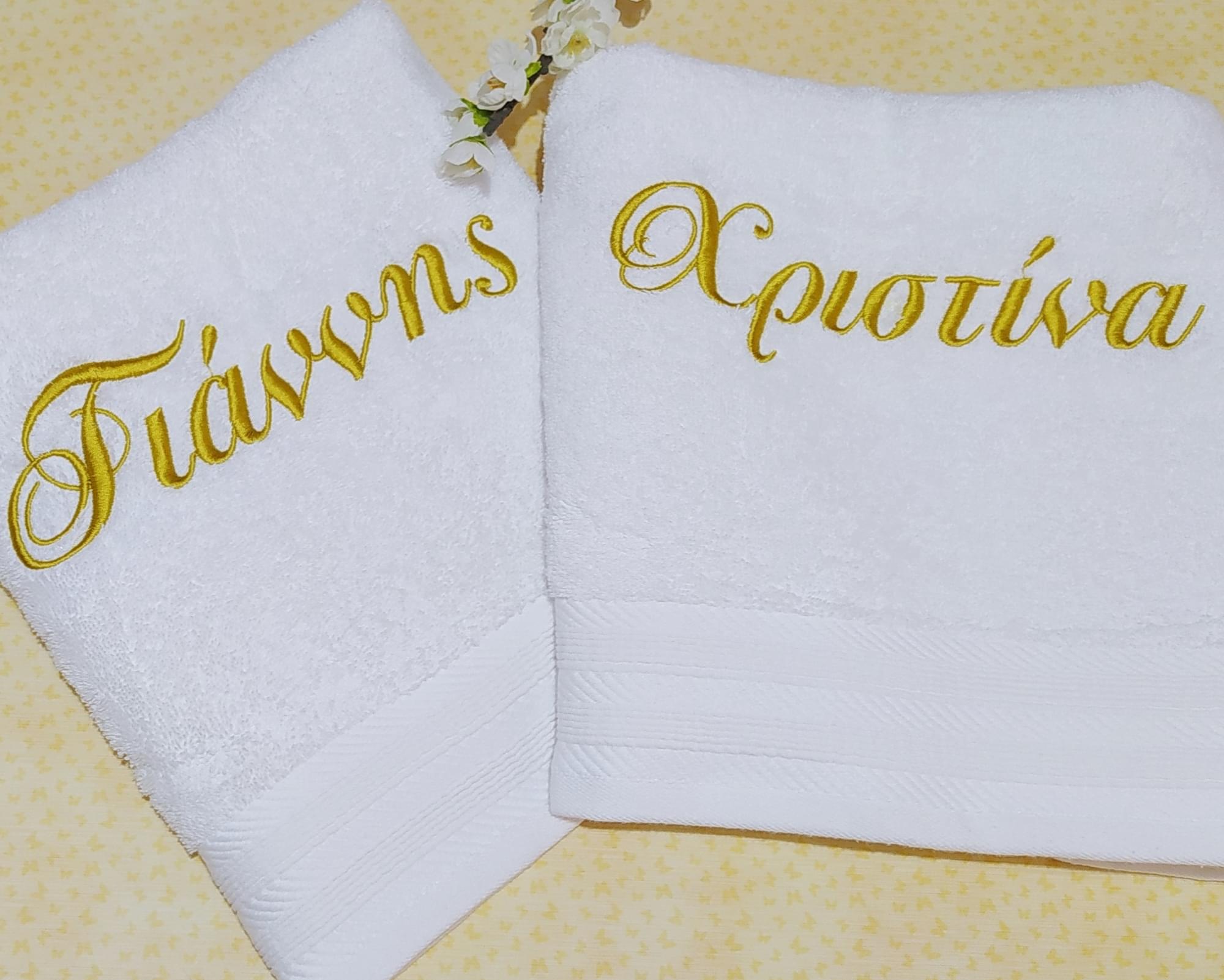 Επίλεξε το χρώμα και το μέγεθος της πετσέτας ή του σετ πετσετών, πάνω στις οποίες θέλεις να κεντηθεί το σχέδιο, καθώς και τις κλωστές που θα χρησιμοποιήσουμε.