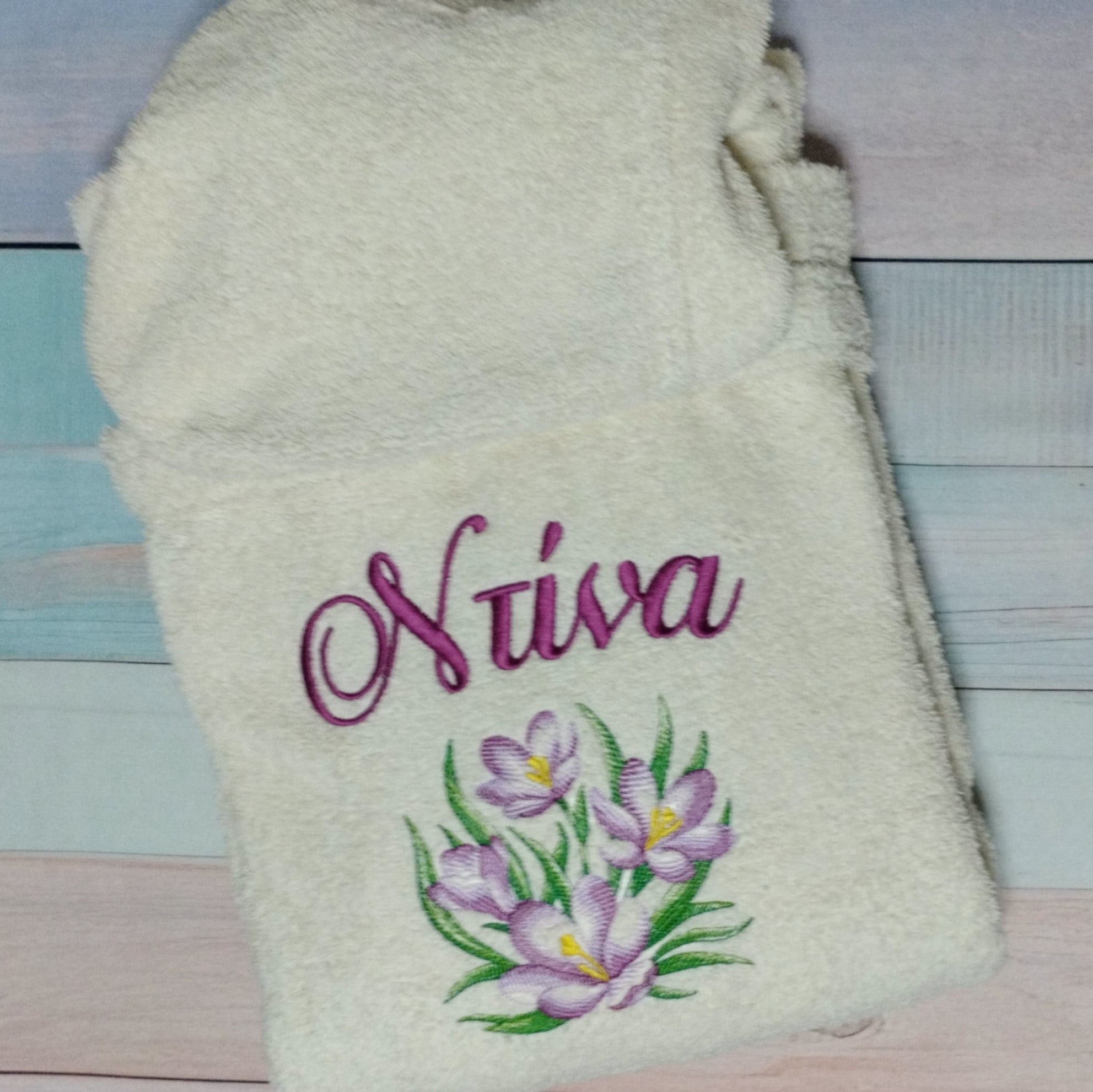 Επίλεξε το χρώμα και το μέγεθος του μπουρνουζιού πάνω στο οποίο θέλεις να κεντηθεί το σχέδιο, καθώς και τις κλωστές που θα χρησιμοποιήσουμε.