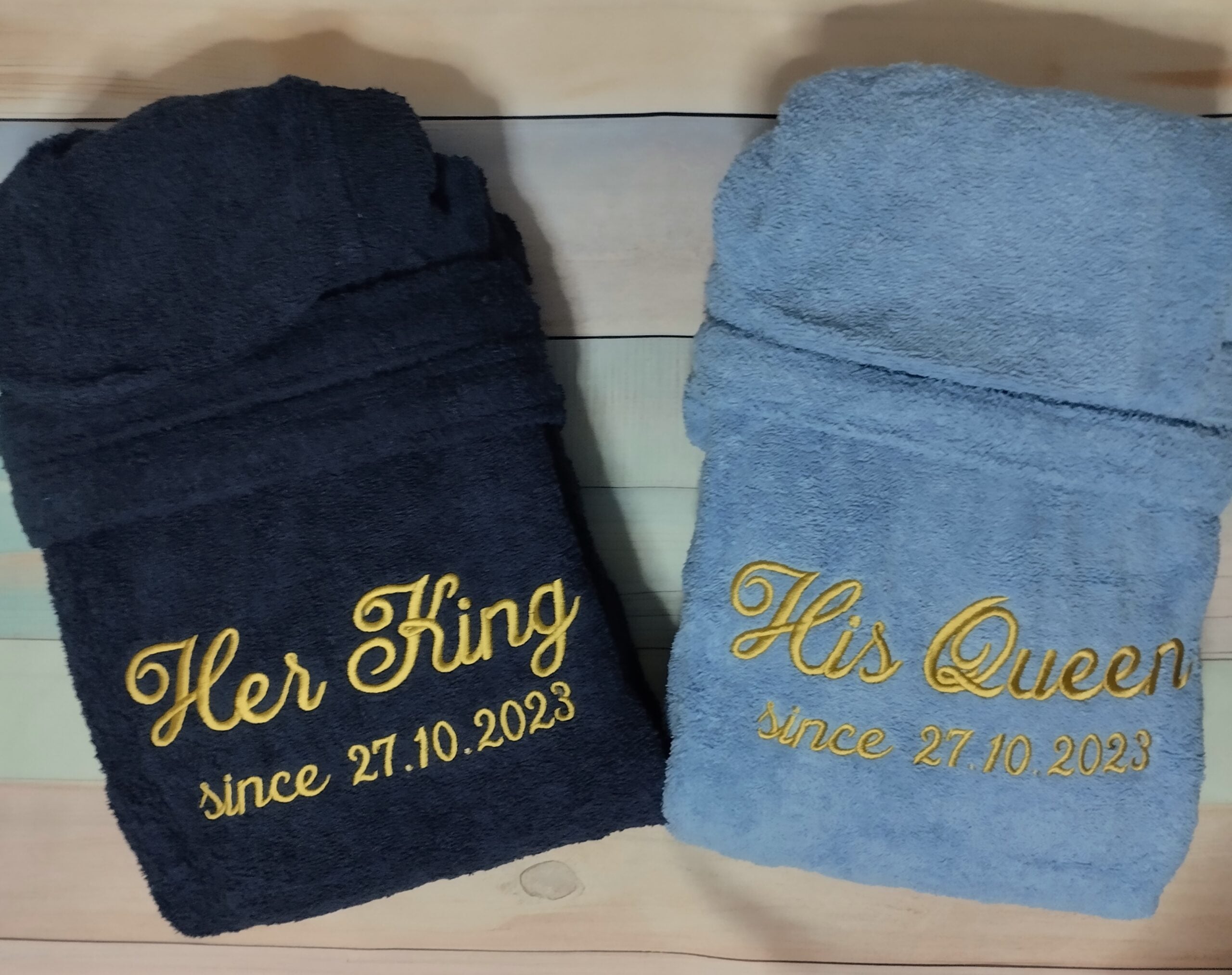 Σετ δύο μπουρνούζια ενηλίκων με κέντημα – Her King-His Queen