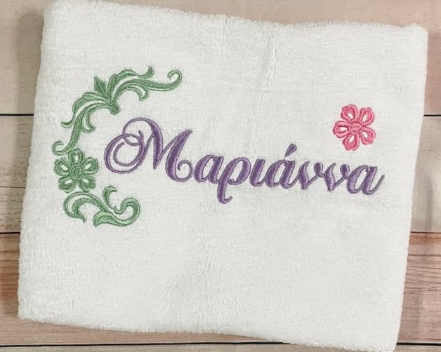 Πετσέτα με κέντημα – Γιρλάντα και όνομα και λουλούδι