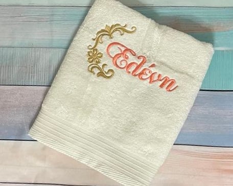Πετσέτα με κέντημα – Γιρλάντα και όνομα