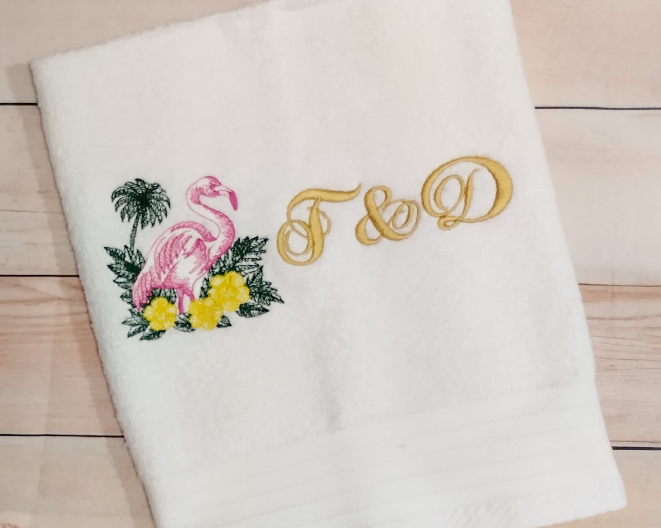 Πετσέτα με κέντημα – Φλαμίνγκο με λουλούδια και όνομα