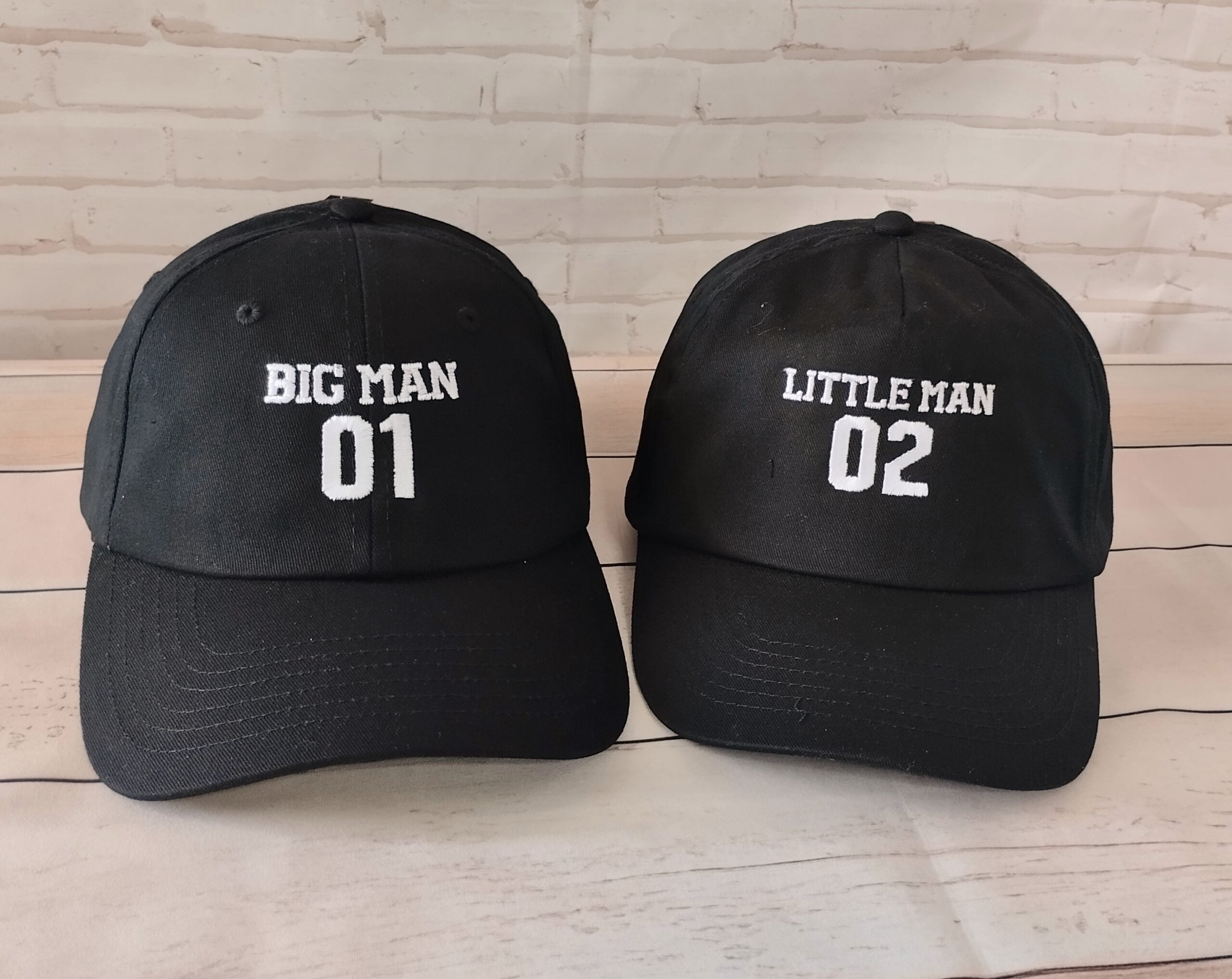 Επίλεξε το χρώμα του καπέλου για τον γονιό και το χρώμα και το μέγεθος του καπέλου για το παιδί πάνω στα οποία θέλεις να κεντηθούν τα κείμενα ή τα σχέδια, καθώς και την κλωστή για το καθένα.