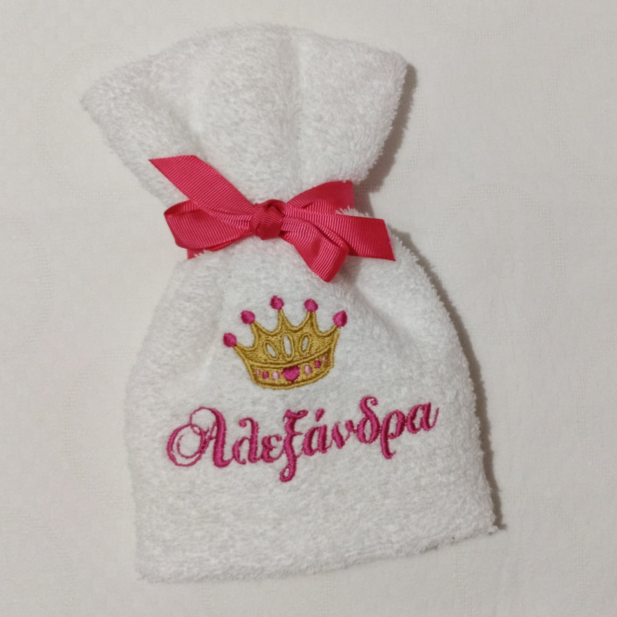 Η παραγγελία αφορά μόνο τις πετσέτες με το κέντημα, οι κορδέλες και τα κουφέτα δεν περιλαμβάνονται.
