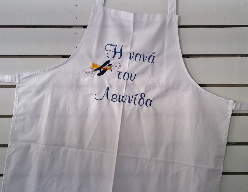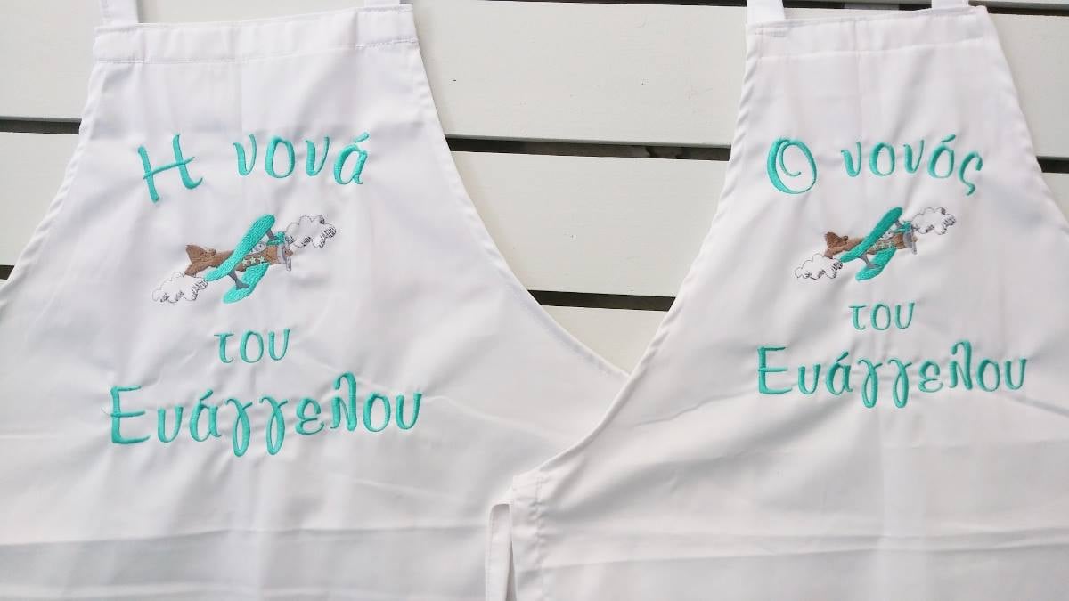 Ποδιά με κέντημα για νονά/νονό – Θέμα βάπτισης-Αεροπλανάκι